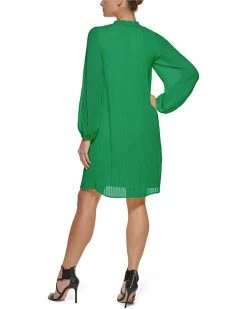 DKNY Long Sleeve Pleated Shift Dress with Neck Tie | Dresses