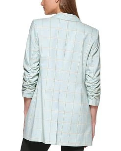 DKNY Open Front Plaid Ruched Sleeve Jacket | Coats & Outerwear