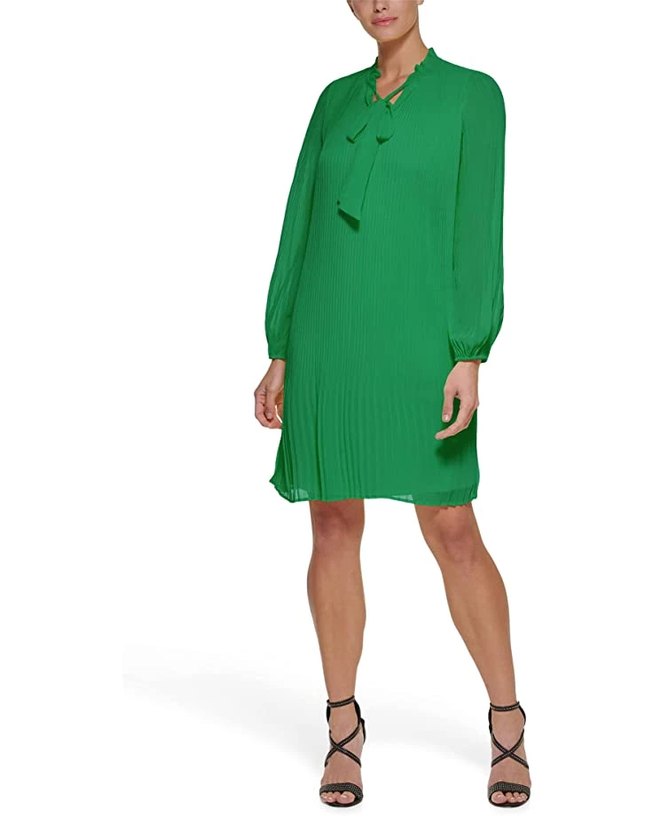 - Get the versatile and fashionable DKNY® Long Sleeve Pleated Shift Dress with Neck Tie and stay on top of the fashion game.