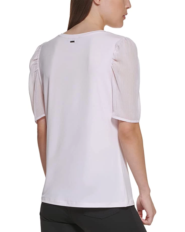- Add a touch of elegance to your casual style with the casual DKNY® Mixed Media Puff Short Sleeve Top.