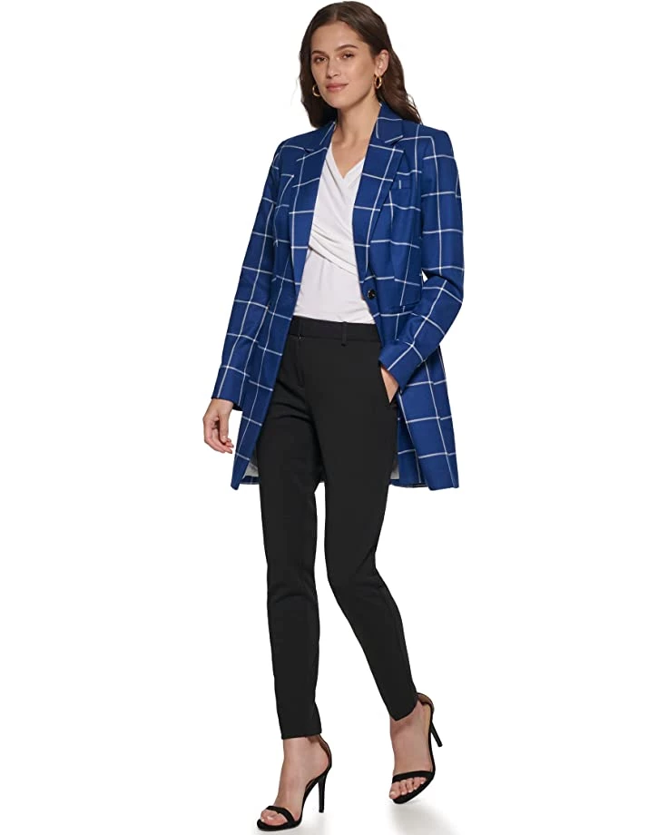 - The DKNY One-Button-Down Windowpane Blazer is the perfect piece to polish off any outfit while maintaining your professional look.