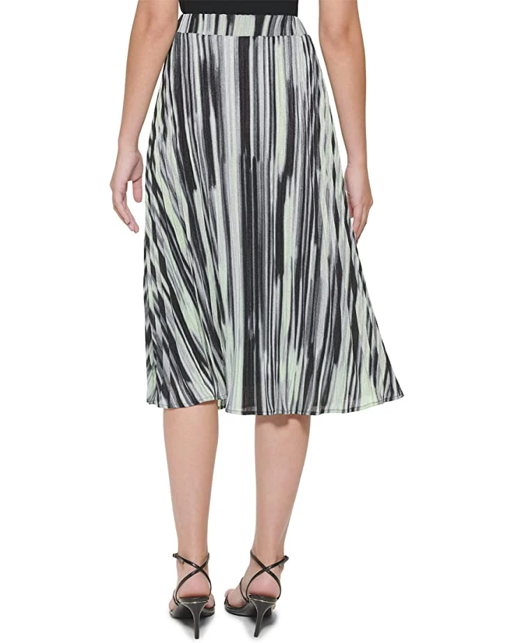 - Make a fashion statement wearing the printed DKNY® Printed Pull-On Pleated Skirt.