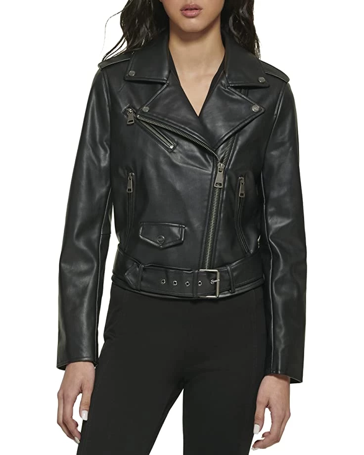 - Get a fine touch of style and comfort wearing DKNY® PU Moto Jacket.