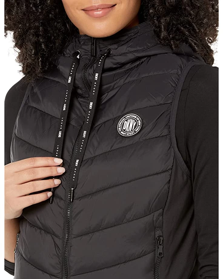 - DKNY® Puffer Vest with Logo Drawcord comes with a drawcord closure on the collar with signature brand detailing, making a fashion statement.