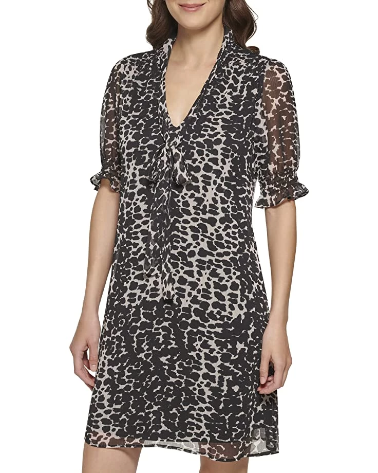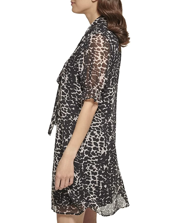 DKNY Short Sleeve Tie Neck Fit-and-Flare Dress | Dresses