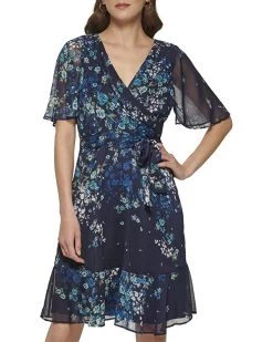 - Style flows with every move that you make donning the DKNY® V-Neck Cape Sleeve Dress.