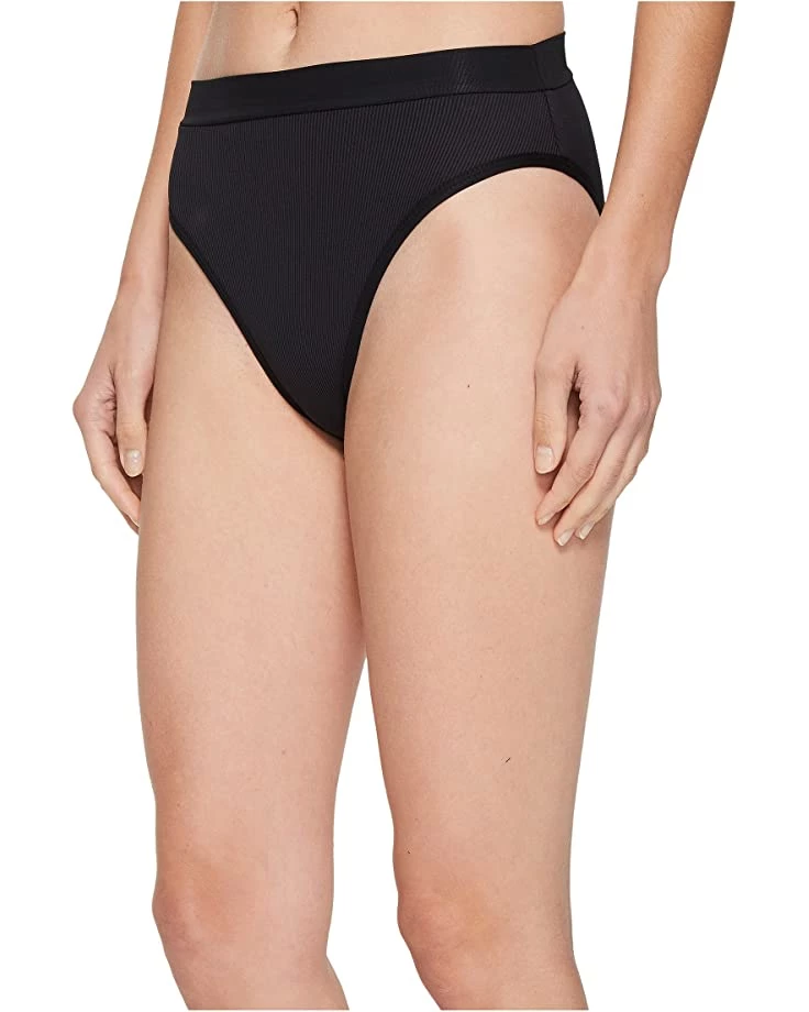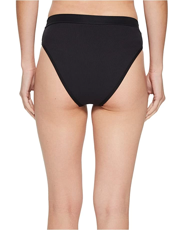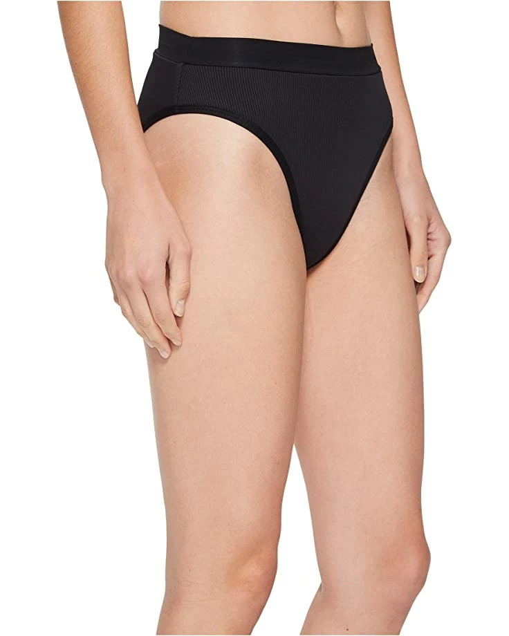 - Bikini bottom in a ribbed fabrication and a high-rise stretch waist conforms to the body.