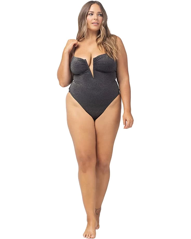 - Crafted for style and comfort, the L*Space® Shine On Shimmer Roxanne One-Piece Bitsy features a plunging v wire detail on neckline, adjustable spaghetti strap, and a bitsy back coverage.